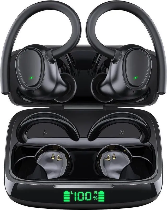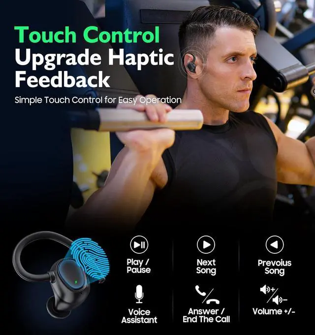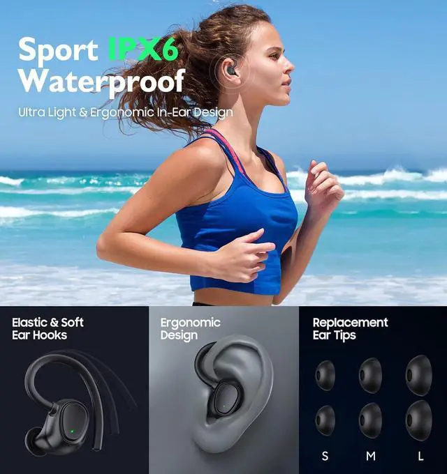 Ergonomic Design for Sports -- Unshakable and comfortable fit ear hooks and ergonomic shape make the wireless earbuds stay firmly in position with no pain while sports. Comes with 3 different sized eartips that fit snugly and comfy in the ears. The wireless earbuds will never fall off even do strenuous endurance training. Featured with its IPX6 coating, our wireless earphones are built for any lifestyle. Go ahead and wear them running in the rain, working out at the gym, cycling, or hiking.