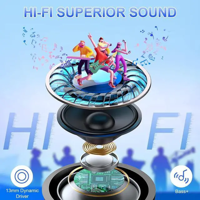 Excellent Sound Quality: The bluetooth headphones adopts advanced acoustic components, with clear treble and strong bass. The headphones bluetooth wireless with noise reduction technology can effectively reduce environmental noise and echo, and provide a super stable HiFi stereo experience. CVC 8.0 ensures uninterrupted clear calls by optimally capturing your voice and reducing ambient noise around you.