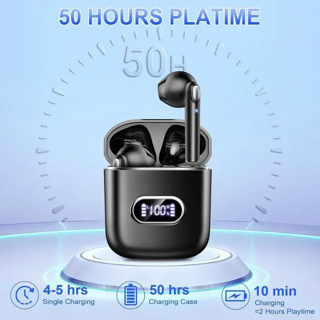 Mini Design & 50 Hours Playtime: Designed with low power consumption, the wireless earbuds bluetooth have a built-in 300mAh powerful battery, and the charging case can provide 7-9 full charges for two wireless earbuds, then the earphones with the portable charging case will get about 50 Hours of battery life in binaural mode. Charging will start automatically when the earbuds are placed back into the charging case.