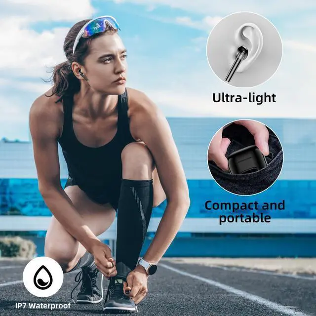 IP7 Waterproof & Lightweight: The wireless bluetooth earphones are designed with IP7 waterproof nano-coating, the sports earphones are strong enough to resist splashes and all penetrations of water. It is more environmentally friendly due to the use of nano-scale materials. In addition, we have adopted a compact design to achieve the lightest, smallest and most compact earbuds weight.