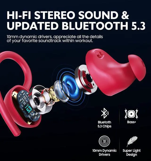 Hi-Fi Stereo & Clear Calls -- Built-in a professional 10mm speaker unit, the wireless earbuds perform the design of the composite vibration membrane to avoid sound distortion. In-ear design of the wireless ear buds bring you incredible 6D stereo sound. Dynamic treble and big bass, carefully tuned sound features, bring you an immersive sound, making you feel like in the centre of the stage. Hi-Fi stereo, hands-free calling during sports with wireless earbuds anytime and anywhere.