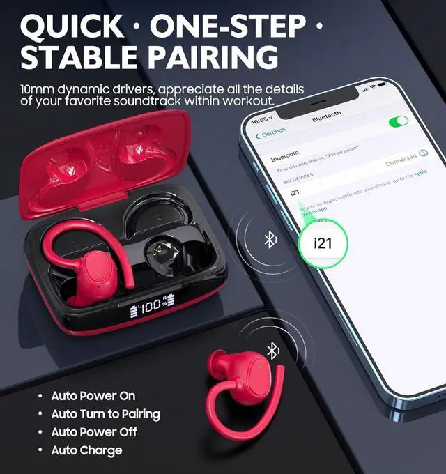 Quick Pairing & Touch Control -- Taking wireless earbuds out of the case and they will automatically pair and connect with themselves. Activate bluetooth function and search for "i21". After the first successful connection, the wireless earbuds with microphone will automatically connect to the last paired device when reboot. Round shape touch sensors are well-designed on the back of the bluetooth headset, making it easier to operate blindly for phone call, volume control, Siri, etc.