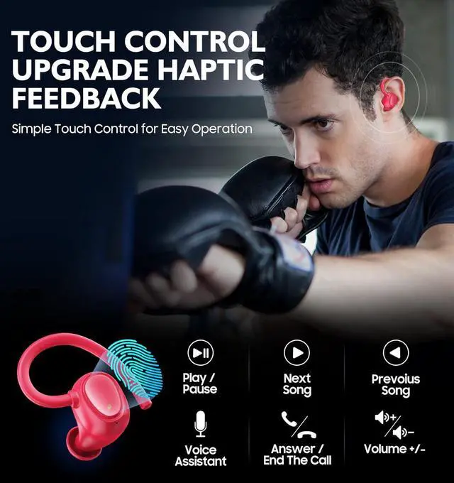 Ergonomic Design for Sports -- Unshakable and comfortable fit ear hooks and ergonomic shape make the wireless earbuds stay firmly in position with no pain while sports. Comes with 3 different sized eartips that fit snugly and comfy in the ears. The wireless earbuds will never fall off even do strenuous endurance training. Featured with its IPX6 coating, our wireless earphones are built for any lifestyle. Go ahead and wear them running in the rain, working out at the gym, cycling, or hiking.