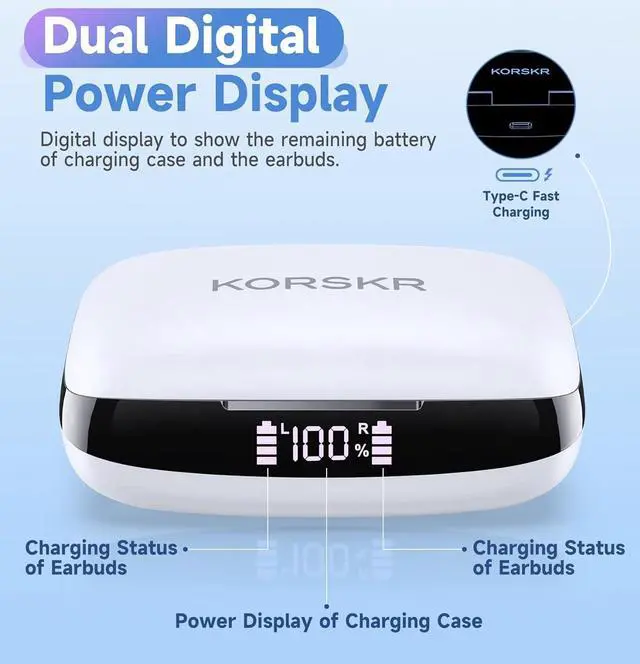 Bluetooth 5.3 Stable Connection -- No More Troubled Pairing! KORSKR ear buds earbuds featured with the advanced Bluetooth 5.3 chipset ensure faster one-step pairing connection and more stable transmission. The earbuds with microphone provide quicker transmission for a more immersive audio experience when playing mobile games. These wireless earbuds sport connect seamlessly with devices up to 49 feet away.