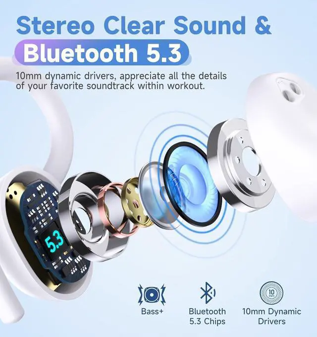 Hi-Fi Stereo & Clear Calls -- Built-in a professional 10mm speaker unit, the wireless earbuds perform the design of the composite vibration membrane to avoid sound distortion. In-ear design of the wireless ear buds bring you incredible 6D stereo sound. Dynamic treble and big bass, carefully tuned sound features, bring you an immersive sound, making you feel like in the centre of the stage. Hi-Fi stereo, hands-free calling during sports with wireless earbuds anytime and anywhere.