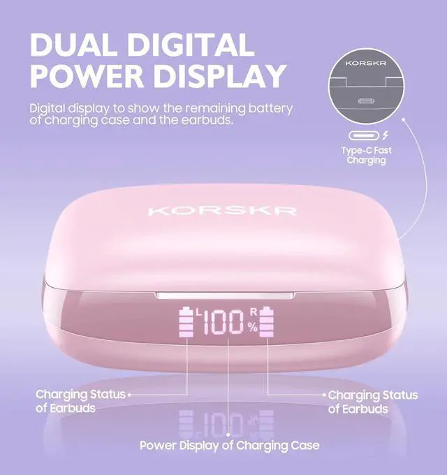 Bluetooth 5.3 Stable Connection -- No More Troubled Pairing! KORSKR ear buds earbuds featured with the advanced Bluetooth 5.3 chipset ensure faster one-step pairing connection and more stable transmission. The earbuds with microphone provide quicker transmission for a more immersive audio experience when playing mobile games. These wireless earbuds sport connect seamlessly with devices up to 49 feet away.