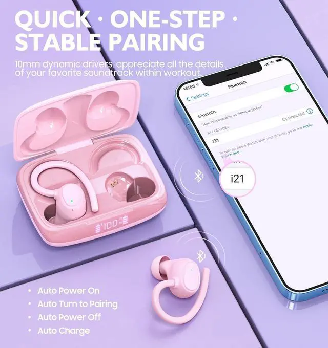 Quick Pairing & Touch Control -- Taking wireless earbuds out of the case and they will automatically pair and connect with themselves. Activate bluetooth function and search for "i21". After the first successful connection, the wireless earbuds with microphone will automatically connect to the last paired device when reboot. Round shape touch sensors are well-designed on the back of the bluetooth headset, making it easier to operate blindly for phone call, volume control, Siri, etc.