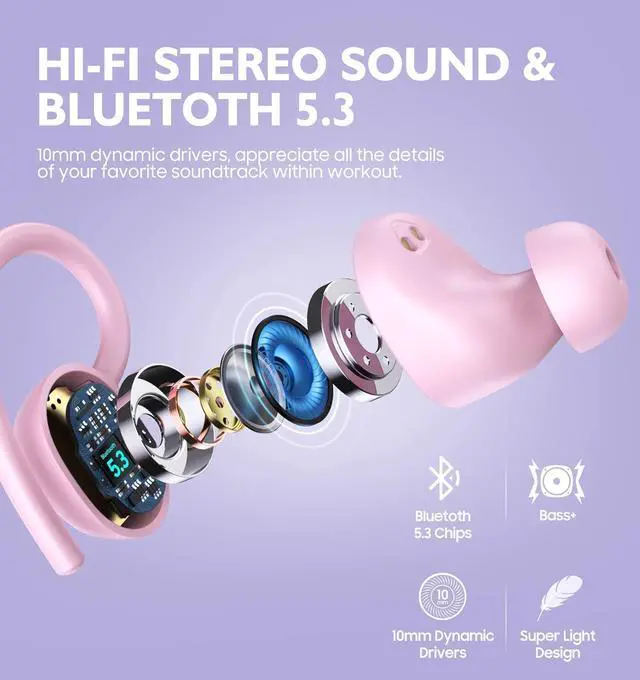 Hi-Fi Stereo & Clear Calls -- Built-in a professional 10mm speaker unit, the wireless earbuds perform the design of the composite vibration membrane to avoid sound distortion. In-ear design of the wireless ear buds bring you incredible 6D stereo sound. Dynamic treble and big bass, carefully tuned sound features, bring you an immersive sound, making you feel like in the centre of the stage. Hi-Fi stereo, hands-free calling during sports with wireless earbuds anytime and anywhere.