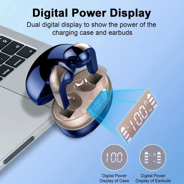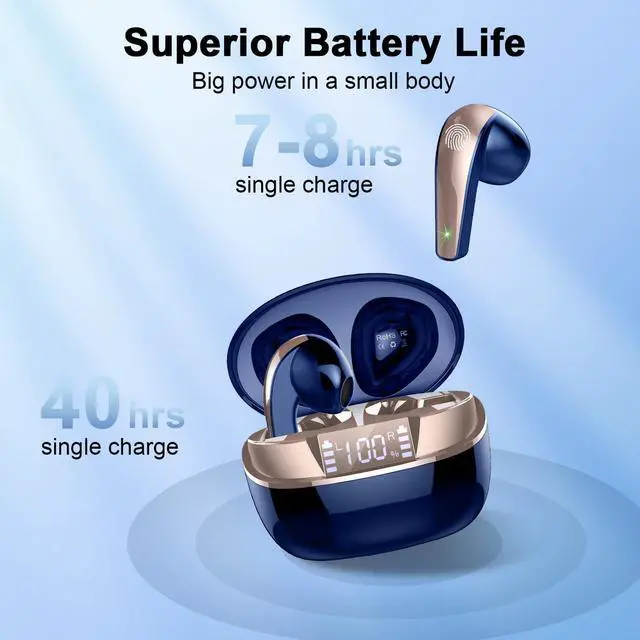 Long-lasting Battery Life and Digital Display: With a large-capacity battery, This earbuds wireless bluetooth can provide 7 hours of playback time after 1.5 hours of charging. and When used with the charging box, they can last up to 40 hours. The dual LED displays on the case monitor the battery status in real time, so you don't have to worry about the earphones wireless running out of power even during long journeys.