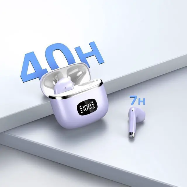 40 Hours of Playback and LED Digital Display: Single wireless headphones can be used for 7 hours, with the charging case can be used for 40 hours. Double digital display can better view the power usage of the earbuds.