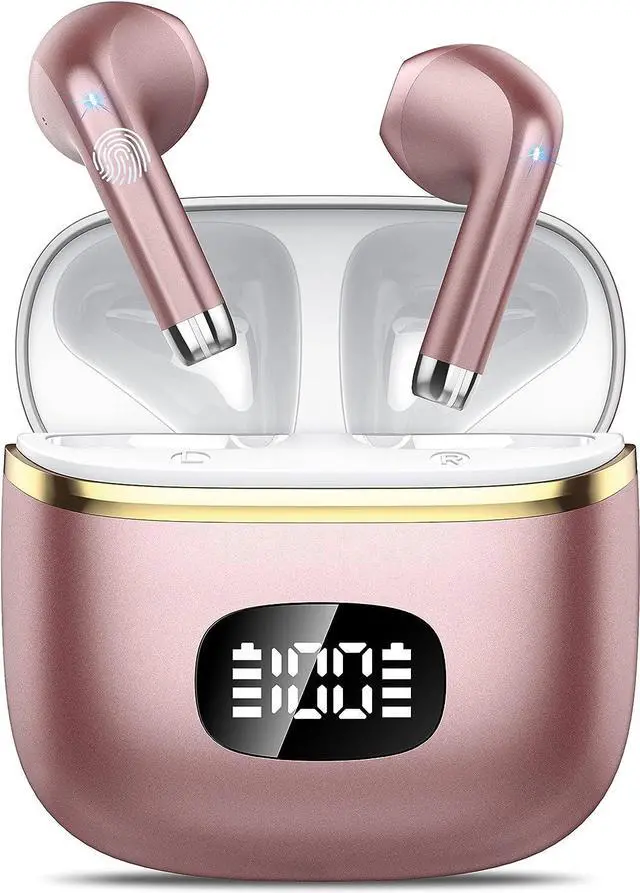 40 Hours of Playback and LED Digital Display: Single wireless headphones can be used for 7 hours, with the charging case can be used for 40 hours. Double digital display can better view the power usage of the earbuds.