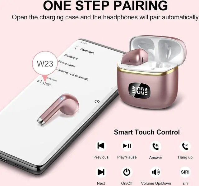 One-Step Pairing: The wireless earbuds feature state-of-the-art Bluetooth 5.3 technology, which increases audio data transfer speeds by up to 75% and allows for more stable connections and lower power consumption. When removed from the charging case, the wireless earbuds pair immediately and automatically connect to the last paired device.