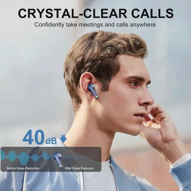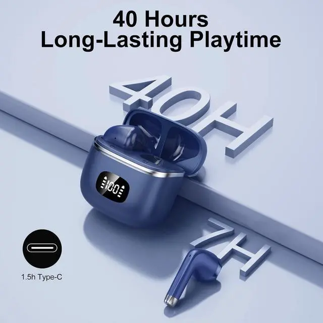 40 Hours of Playback and LED Digital Display: Single wireless headphones can be used for 7 hours, with the charging case can be used for 40 hours. Double digital display can better view the power usage of the earbuds.