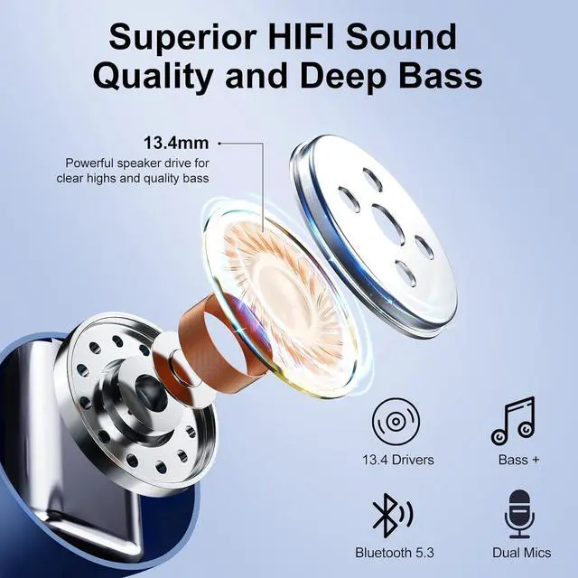 Comfortable Fit and IPX7 Waterproof: The bluetooth headphones is ergonomically designed to fit the inner contours of the ear perfectly, ensuring comfort and resistance to falling off. The wireless headphones is nano-coated with IPX7 waterproof technology to protect against splash damage caused by sweat and raindrops, perfect for sports and everyday work.