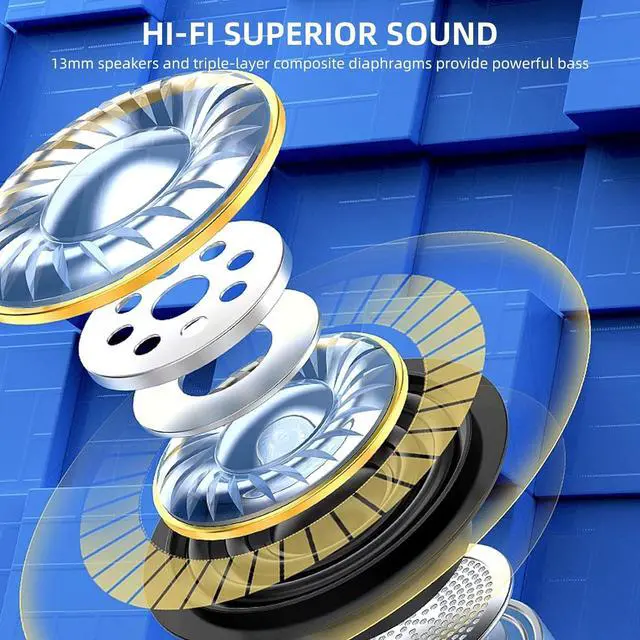 Clear Calls and Hi-Fi Stereo SoundBluetooth earbuds with two built-in microphones is equipped with CVC 8.0 technology that isolates background noise and enhances sound to make calls clear. Wireless earbuds with built-in 13mm graphene audio drivers, professional audio tuning and separate sound chamber design give you a different listening experience.