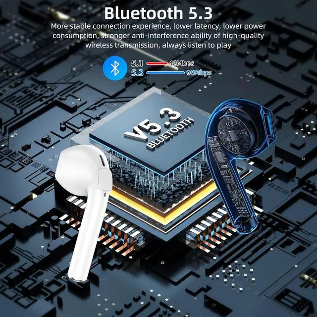 Latest Bluetooth 5.3 for Easy Pairing Wireless earbuds feature an advanced Bluetooth 5.3 chip and dual-channel transmission for more stable and faster transmission speeds, so you can enjoy consistent and stable calls even in areas with complex signals. Simply remove the headset from the charging case and they automatically connect to your phone.