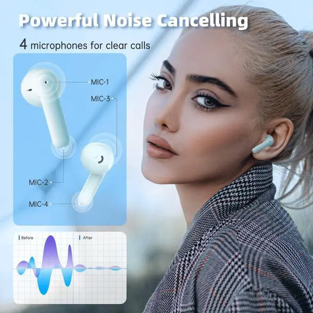 Super Clear Call with 4 MicrophonesYou will get clear calls with built-in 4 microphones, and headphones have digital noise reduction techs, It can filter the 90% enviromental noise, even in the train station, both parties can clearly hear each other's talking when you have a callrefuse to yell.