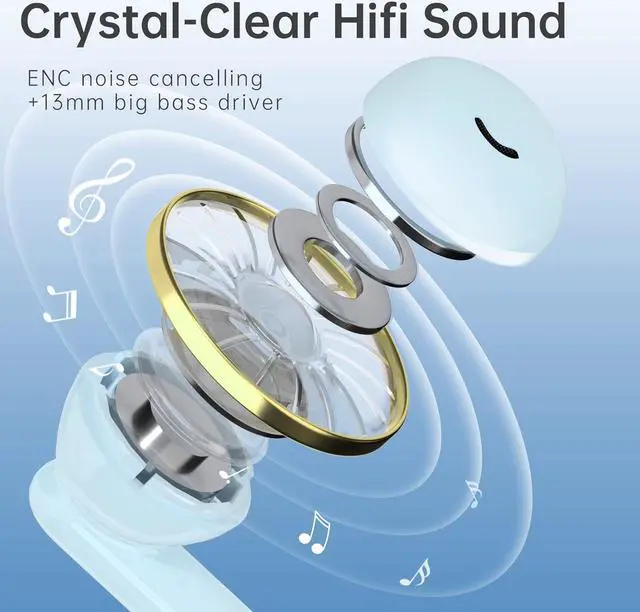 Super HiFi Sound Bluetooth EarbudsEarbud powered by powerful 13mm driver, professional acoustic cavity structure capture big bass and more treble, has a stable sound mix, provide pure hifi stereo sound. Two bluetooth earbuds will bring you immersive enjoyment.