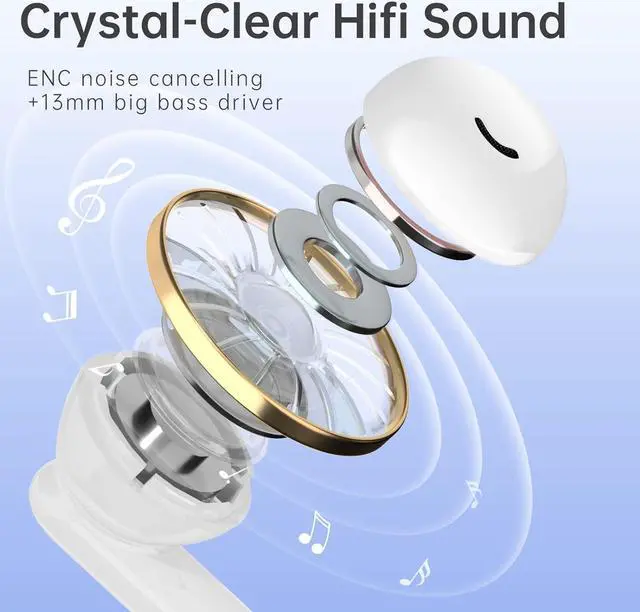 Super HiFi Sound Bluetooth EarbudsEarbud powered by powerful 13mm driver, professional acoustic cavity structure capture big bass and more treble, has a stable sound mix, provide pure hifi stereo sound. Two bluetooth earbuds will bring you immersive enjoyment.
