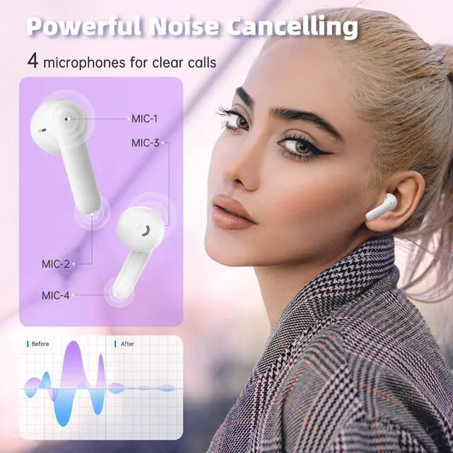 Super Clear Call with 4 MicrophonesYou will get clear calls with built-in 4 microphones, and headphones have digital noise reduction techs, It can filter the 90% enviromental noise, even in the train station, both parties can clearly hear each other's talking when you have a callrefuse to yell.