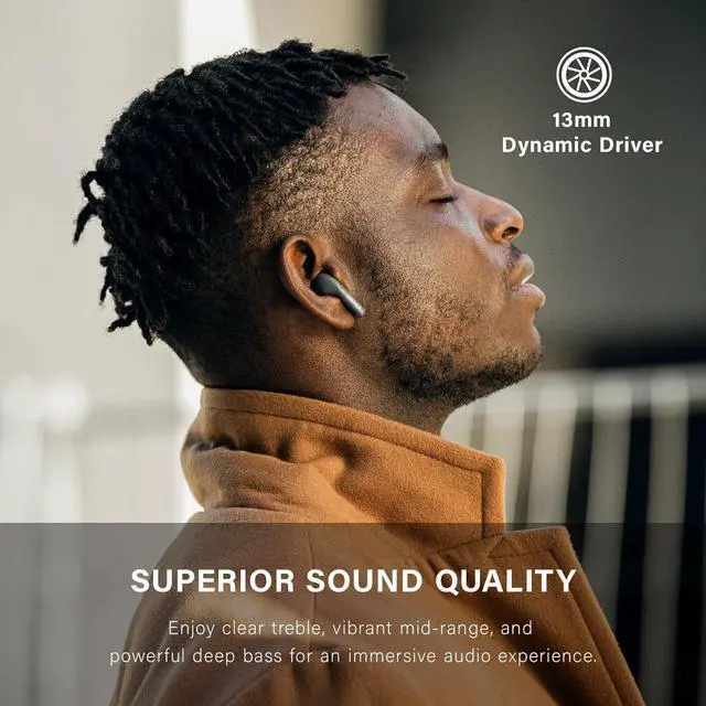 IMMERSIVE SOUND WITH 13MM DYNAMIC DRIVERS Experience impressive audio quality with deep bass and clear, detailed sound reproduction, thanks to the powerful 13mm dynamic drivers.