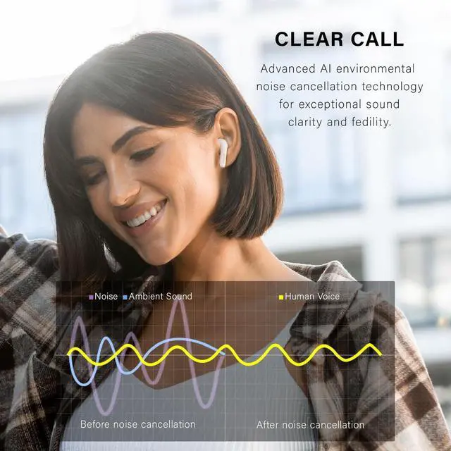 ADVANCED AI ENVIRONMENTAL NOISE CANCELLING Stay focused on your calls with AI environmental noise cancelling, ensuring crystal clear voice transmission even in noisy environments.