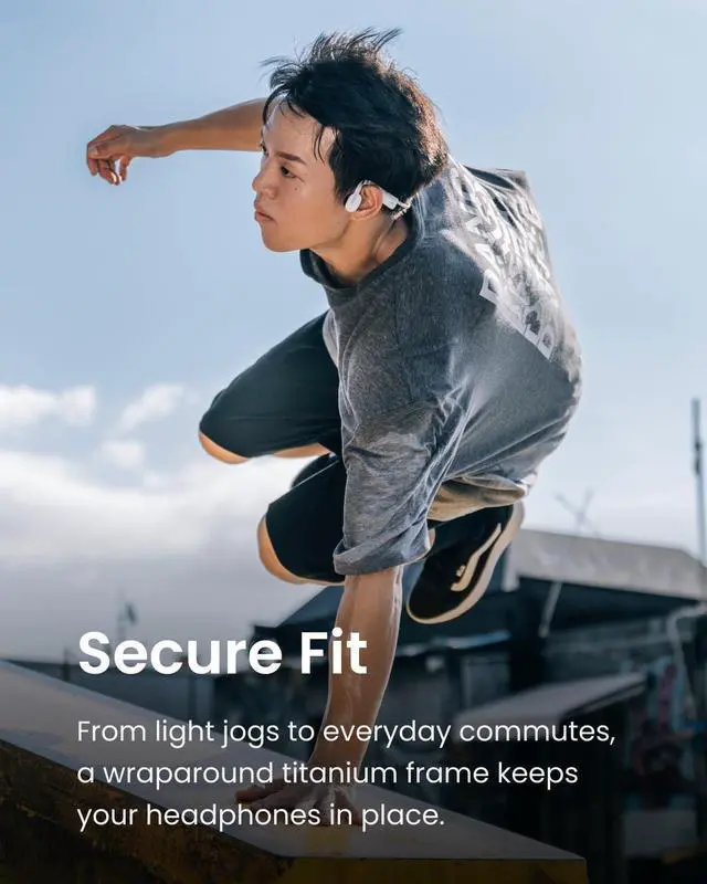 Secure Fit - From light jogs to everyday commutes, a wraparound titanium frame keeps your bone conduction headphones in place during a range of low impact activities.