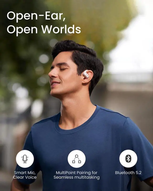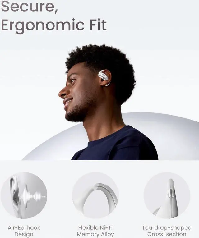 Engineered Fit - Designed for improved comfort with our signature open-ear concept and an adaptable earhook that weighs in at only 0.3 oz. These open-earbuds are built to remain securely in place.