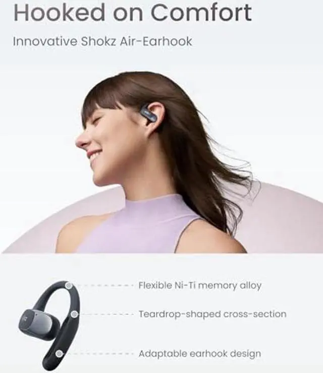 Engineered Fit - Designed for improved comfort with our signature open-ear concept and an adaptable earhook that weighs in at only 0.3 oz. These open-earbuds are built to remain securely in place.