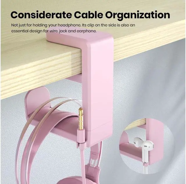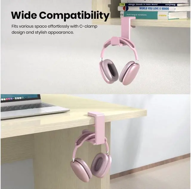 UNIVERSAL UNDER DESK DESIGN clamps on to desks up to 40mm thick and as narrow as 8mm for a near universal fit on most desks || Spring Clamp is easy to remove and reattach! Headphone Hook for birthday gifts