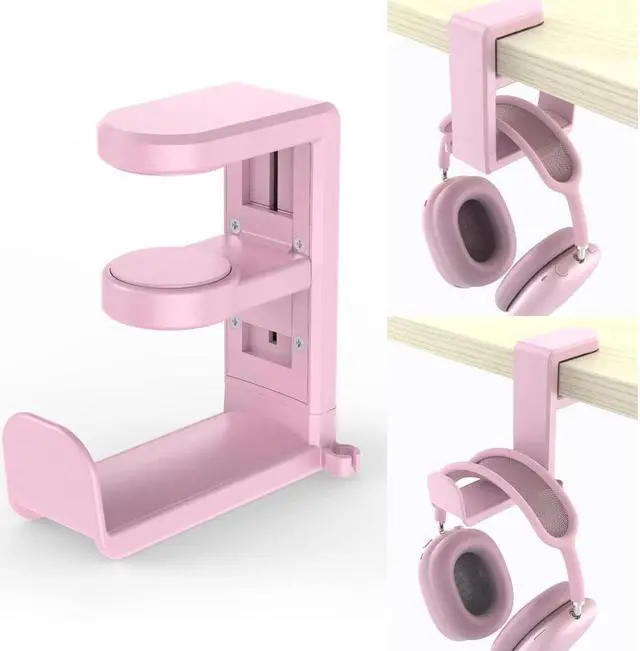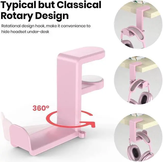 ROTATING ADJUSTABLE HEADPHONE ARM swings underneath your desk for discreet & non-intrusive storage and swings back out for easy access.