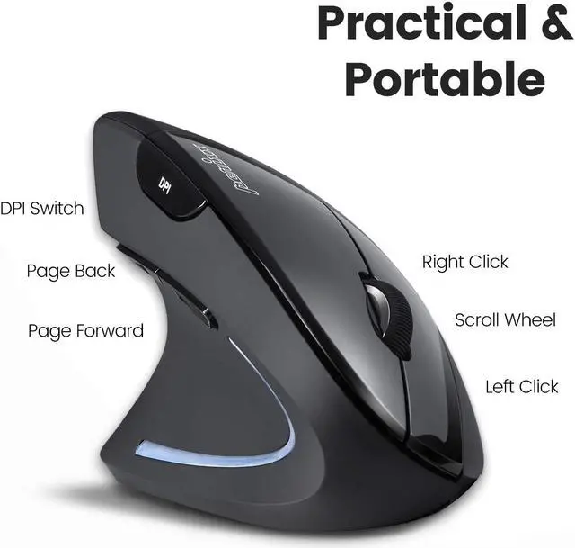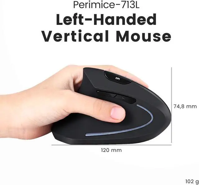 LEFT-HANDED ERGO MOUSE: Natural ergonomic vertical with left-handed design. 6-button mouse to increase your productivity; Recommended for users with muscle strains and particularly for those who works long periods on the computer