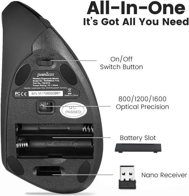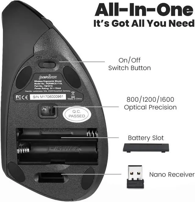 WIRELESS 2.4 GHZ CONNECTION: Plug and play mouse with Nano USB receiver. Nano USB receiver with storage compartment, easy for you to store your USB