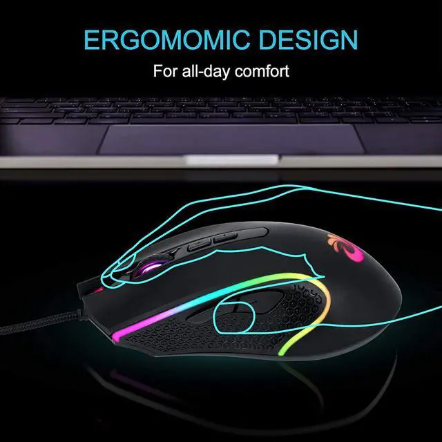 Comfort and practicalityComputer mouse's symmetrical and streamlined design is ergonomic and provides a comfortable hand grip using experience, ensuring the best touch effect and best experience for long-term use. Wired mouse has optimized size for normal to large hand use, the most practical gift for friends and family.