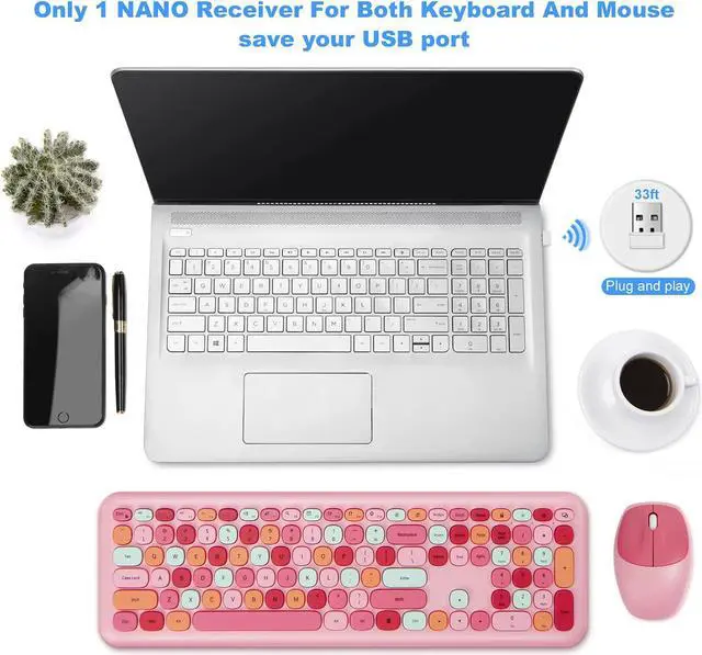 ??Only One USB ReceiverThe wireless keyboard and mouse use 2.4G wireless connection technology. One USB receiver (stored in the back of the mouse) for both keyboard and mouse without installing any additional software. Just plug and play, Providing fast and stable connections without any delay. Do not need any software or driver to use it directly.