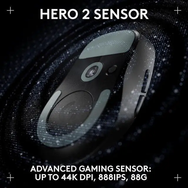 Pro-Precision: The most advanced sensor in gaming. The HERO 2 sensor has sub micron tracking at up to 44K DPI across full range of motion, and up to 888 IPS/ 88G acceleration (1)