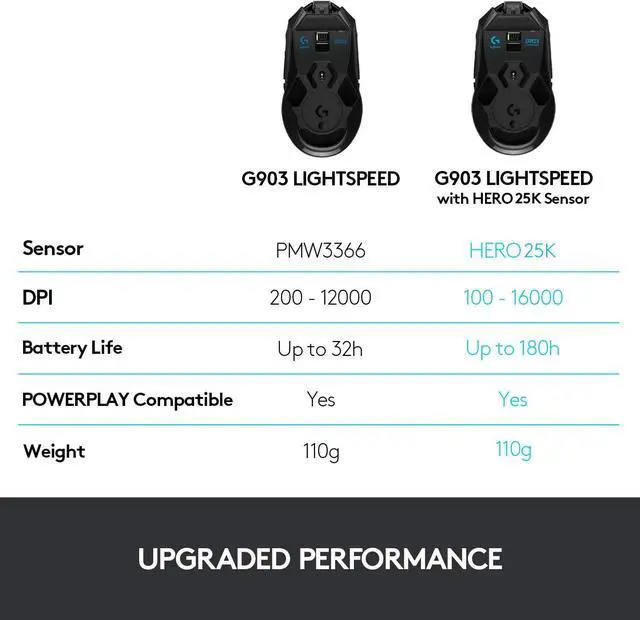 Hero 25K sensor through a software update from G HUB, this upgrade is free to all players: Our most advanced, with 1:1 tracking, 400 plus ips, and 100 - 25,600 max dpi sensitivity plus zero smoothing, filtering, or acceleration