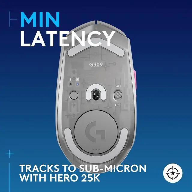 Min Weight: G309 LIGHTSPEED is a lightweight gaming mouse that weighs just 86 g with the included AA battery or 68 g (battery-free) with use of POWERPLAY wireless charging system