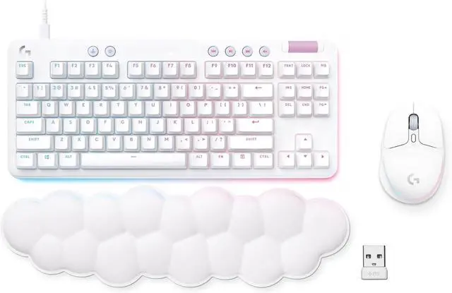 Cloud-soft Comfort: Float away with G713\u2019s dreamy white design and comfy, cloud-shaped palm rest; compact mechanical TKL keyboard layout and adjustable height give that good game feeling, all-day long
