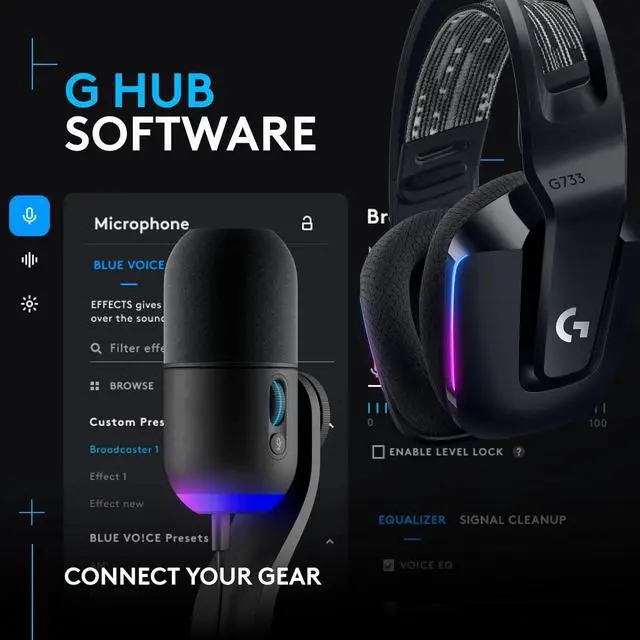 Blue VO!CE sound filters and effects: G733 and Yeti GX feature Blue VO!CE software; Smart Audio Lock and other studio tools; add filters, effects and samples to engage your audience