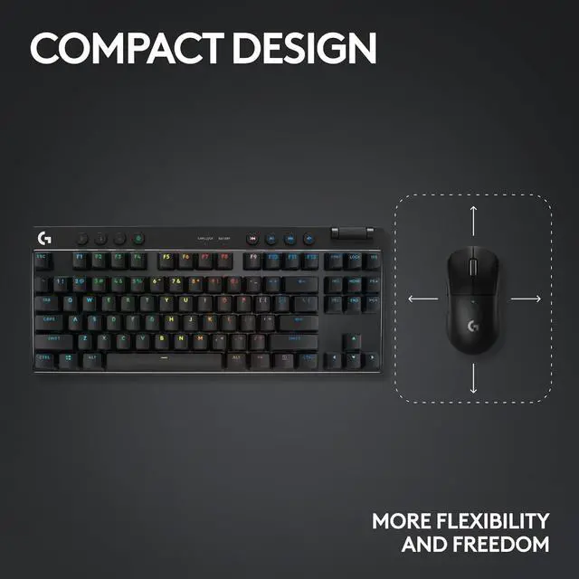 PRO X TKL delivers the championship-trusted performance and reliability of LIGHTSPEED wireless with a TENKEYLESS form factor designed for the highest level of competitive play.