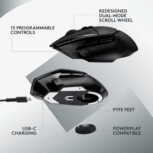 Mouse: LIGHTSPEED wireless: Features pro-grade connectivity, with an updated protocol achieving a 68 percent faster response rate than the previous generation