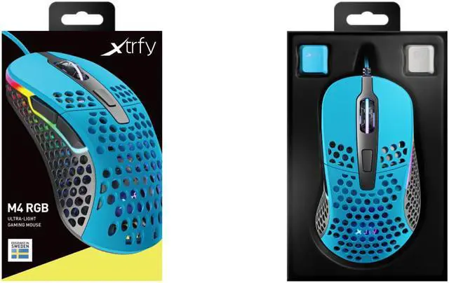 RGB Illumination: With customizable lighting, it's easy to add your own personal touch to the M4. Choose your colour, switch between numerous LED effects and adjust the brightness or turn illumination off completely. The RGB runs around the front of the mouse up both flanks, as well as on the scroll wheel and the XTRFY logo which is subtly visible through the holes on the palm rest for non obtrusive branding Ultra-Light is even lighter with the