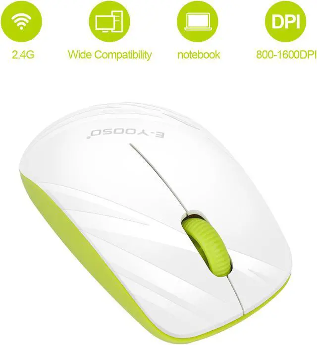 Easy to use Just plug and play, no need driver and software. Comfortable feeling Ergonomic design provide comfortable feeling and let your hands out of fatigue when you use the mouse. CPI adjustable function With 3 adjustable CPI 800/1200/1600, factory setting is 1200CPI. Press the left and right button at the same time to switch the CPI. Nano receiver A very small size design for Nano receiver, it can be plug and play and stay on USB port of PC/Notebook without interference. Saving power mode If mouse is stay out of work for 8 minutes, it will be converted to power saving mode automatically, press any button to restart it.