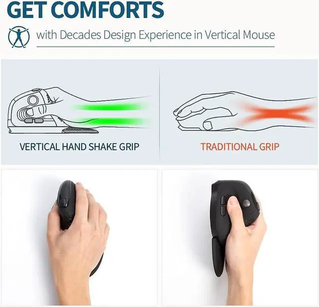 [Ergonomic Vertical Design] Vertical mouse with comfort shape and smooth lines reduce arm discomfort and hand stiffness. Removable palm rest let your forearm and mouse to be a whole part and make you wrist lift from the ground which protect your wrist from friction when moving the mouse