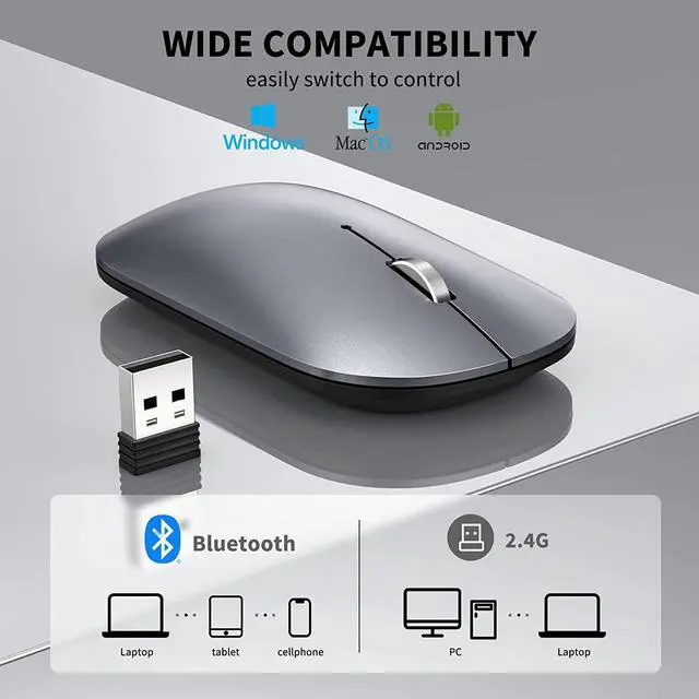 Tri-mode Connection: Bluetooth 5.0 / 3.0 and 2.4GH z for you to choose, TECKNET bluetooth wireless mouse allows you to switch freely between 3 modes. With bluetooth connection mode you can save a valuable USB port. And 2.4GH z wireless technology guarantees strong and reliable connection up to 50ft. No need to install a driver again.