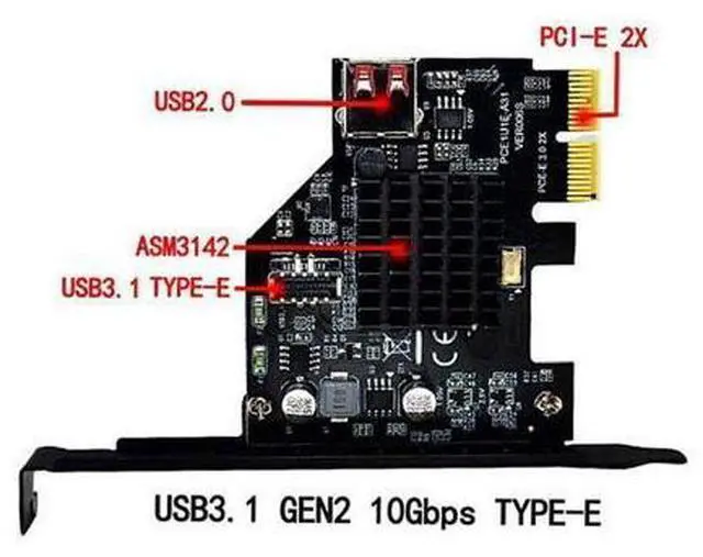 ChenYang 2 Port USB 2.0 USB 3.1 Gen 2 Type-E Front Panel Socket to PCI-E 2X PCI Express Expansion Card Adapter