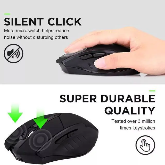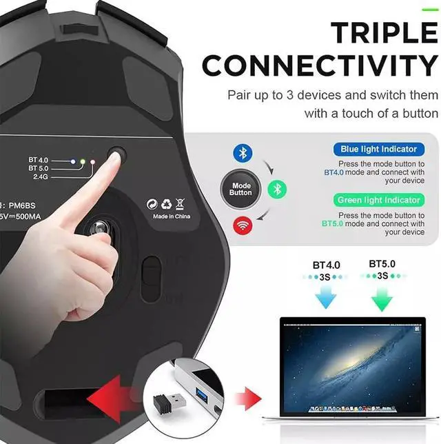 Dual Mode Wireless Connection: Bluetooth 5.0 / 2.4G dual mode wireless mouse connection switch easily. Bluetooth cordless 5.0 brings quick response, precise movement, stable connection & smoother tracking.