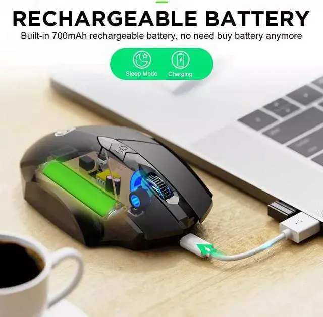 Rechargeable Wireless Mouse: Built-in Li-Ion battery, easy to charge through USB cable, do not need to replace battery again. The mouse will enter into sleep mode automatically.