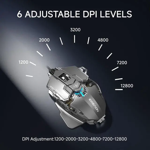 • 6-Level Adjustable DPI: The EWEADN G5 computer mouse features up to 12,800 DPI with 6 adjustable levels and an ultra-fast report rate (1251000Hz), meeting your multiple needs, either for daily work or gaming. Dedicated demand for DPI options between 2000-12800 is available to be processed by software.